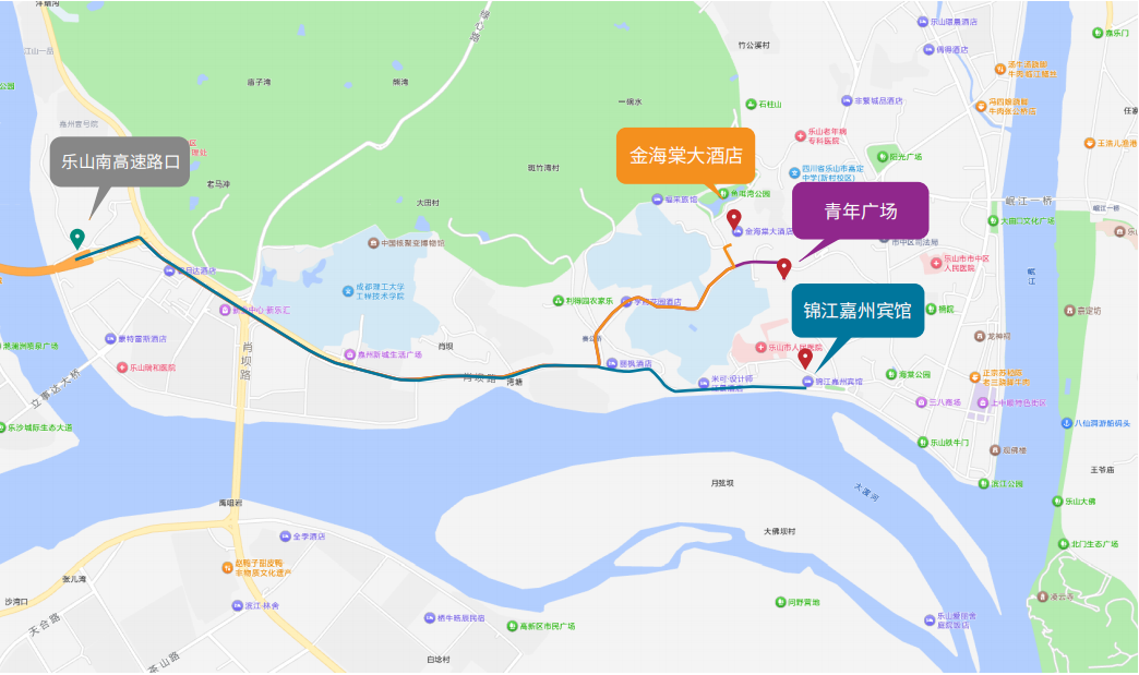 (三)自驾至乐山:推荐高速出口为乐山南收费站(乐雅高速出口),距金海棠大酒店约5公里,车程约15分钟。